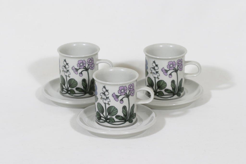 Arabia Flora kahvikupit, 3 kpl, suunnittelija Esteri Tomula, serikuva