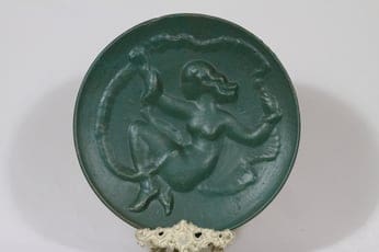 Kupittaan savi Keinumorsian seinälautanen, vihreä lasite, suunnittelija Väinö Aaltonen, suuri