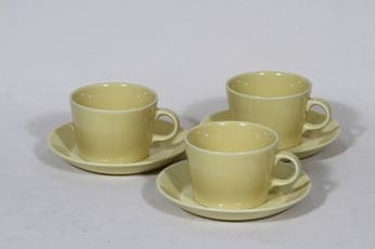 Arabia Kilta kahvikupit, keltainen lasite, 3 kpl, suunnittelija Kaj Franck,