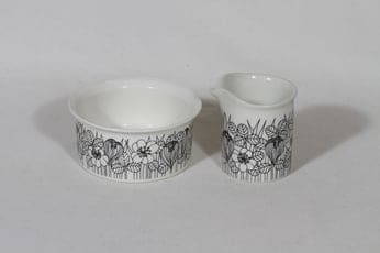 Arabia Krokus sokerikko ja kermakko, mustavalkoinen, suunnittelija Esteri Tomula, serikuva