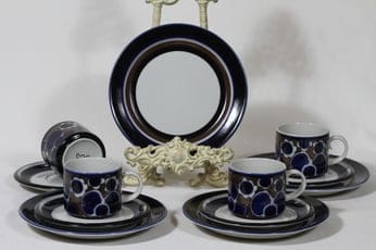 Arabia Saara teekupit ja lautaset, 4 kpl, suunnittelija Anja Jaatinen-Winquist, erikoiskoriste, retro