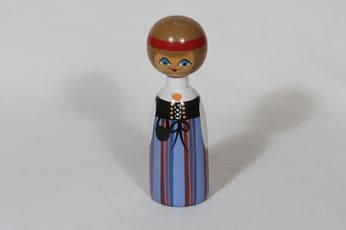 Kupittaan savi puunukke, käsinmaalattu, suunnittelija Orvokki Laine, käsinmaalattu