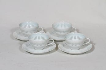 Arabia Lehti mokkakupit, 8 cl, 4 kpl, suunnittelija Friedl Holzer-Kjellberg, 8 cl, riisiposliini, massasigneerattu
