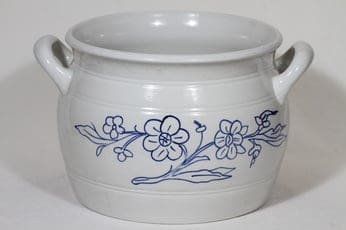 Suurin koskaan valmistettu B-mallin ruukku. Suurin ruukkukoko 9:stä eri kokovariaatiosta vuoden 1934 kuvasto. Sininen värileima. Harmaanvalkoinen värisävy.