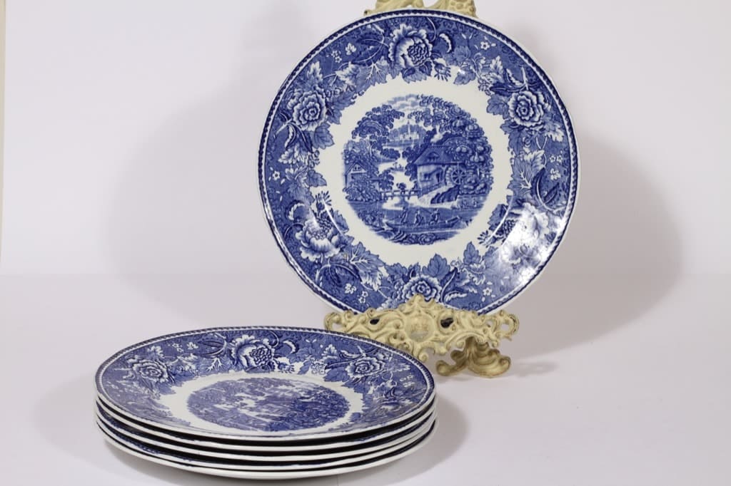 Arabia Maisema lautaset, sininen, 6 kpl, suunnittelija , kuparipainokoriste