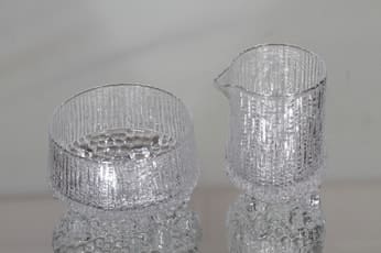 Iittala Ultima Thule sokerikko ja kermakko, kirkas, suunnittelija Tapio Wirkkala,