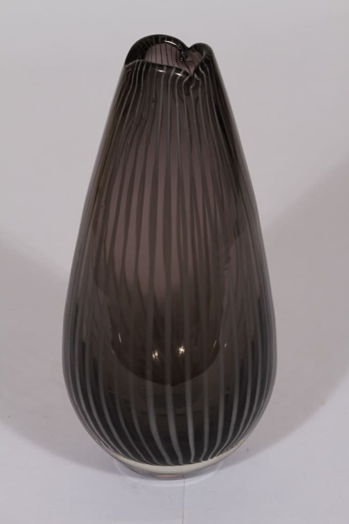 Riihimäen lasi Vuokko taide-esine, harmaa, suunnittelija Nanny Still, filigraani