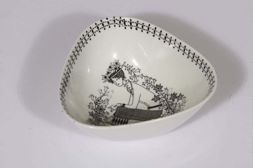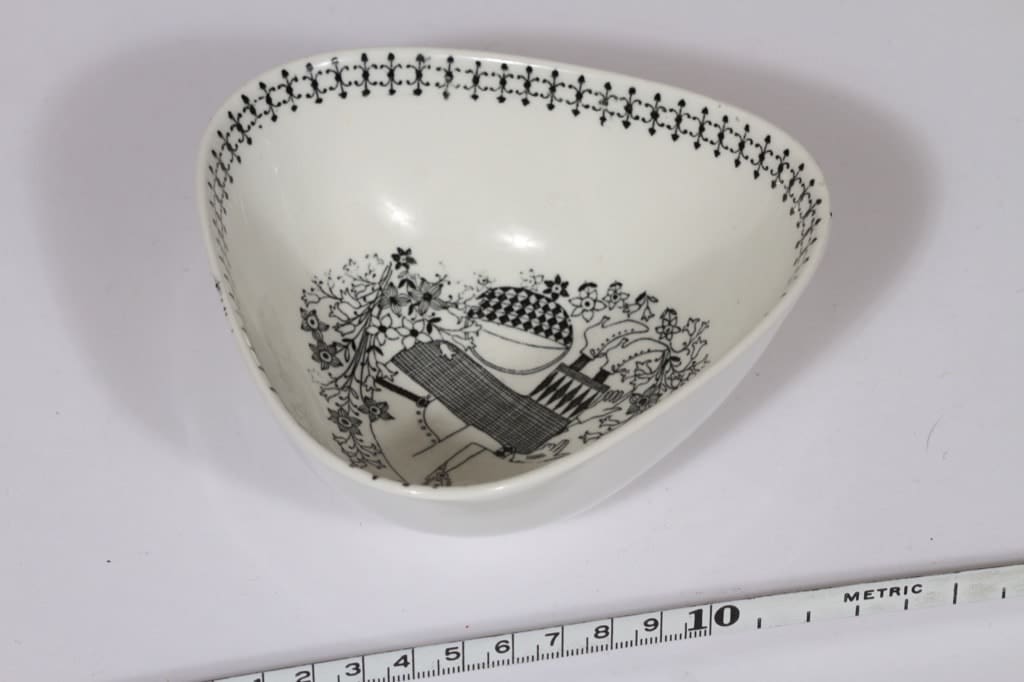 Arabia Emilia kulho, mustavalkoinen, suunnittelija Raija Uosikkinen, pieni, kuparipainokoriste kuva 3