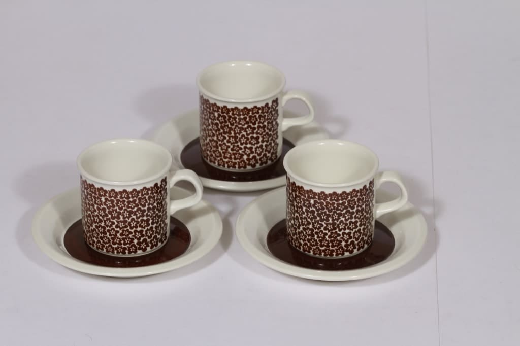 Arabia Faenza mokkakupit, ruskea, 3 kpl, suunnittelija , serikuva
