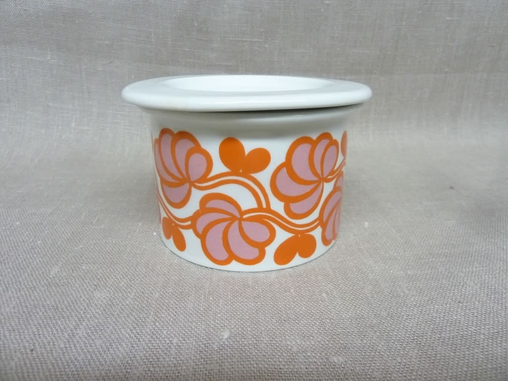 Arabia Pomona Hilla purnukka, oranssi, suunnittelija Gunvor Olin-Grönqvist, serikuva