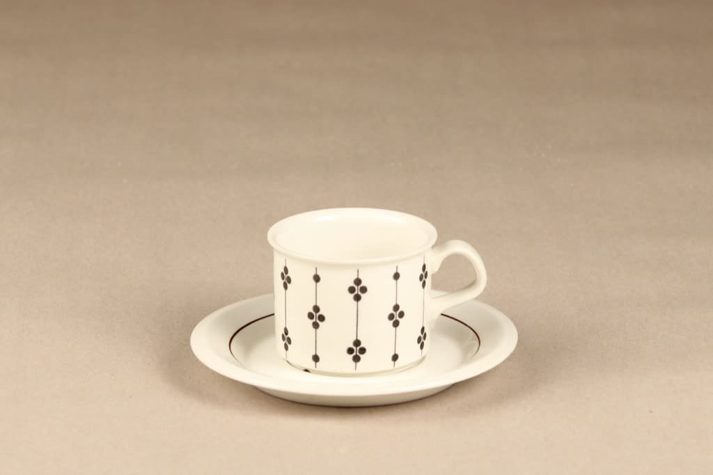 Kupin korkeus 6 cm, halkaisija 7,7 cm, asetin halkaisija 15 cm.