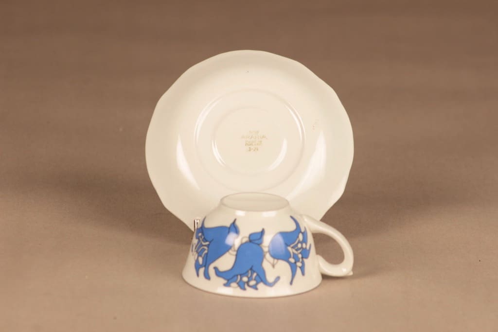 | Dimensions | Kuppi 4.7*8.4 cm, asetin halkaisija 12.8 cm, kakkulautasen 17.5 cm |