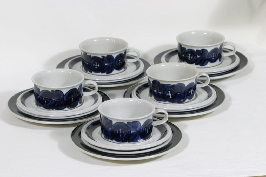 Erittäin vähäisiä käytön jälkiä. Sisältää alus- ja leivoslautaset. Koriste Ulla Procope.