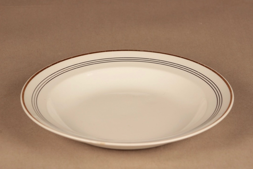 Arabia lautanen, valkoinen, musta ja kulta raita, 5 kpl, suunnittelija , raitakoriste kuva 3