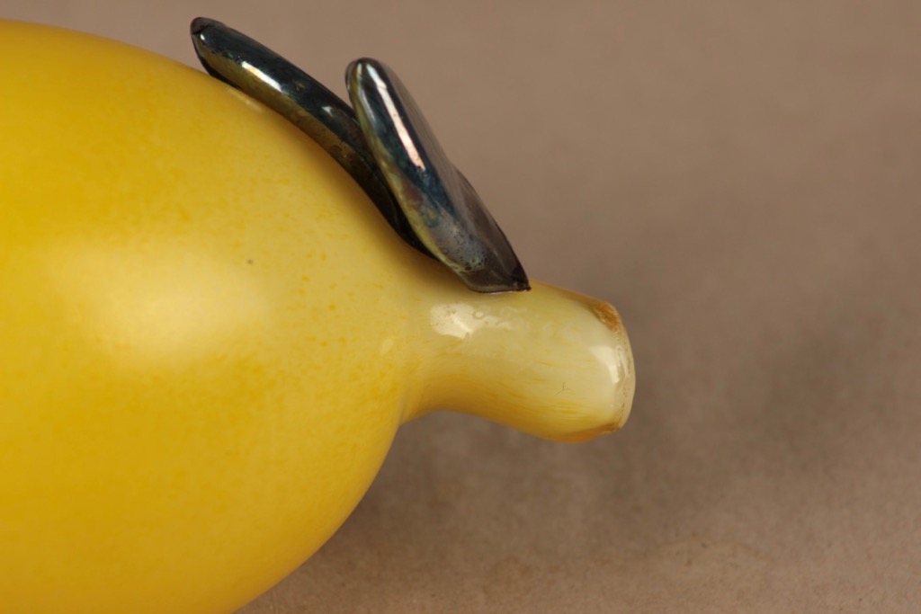 Nuutajärvi Hedelmät lasiveistos, Sitruuna, suunnittelija Oiva Toikka, Sitruuna, signeerattu kuva 2