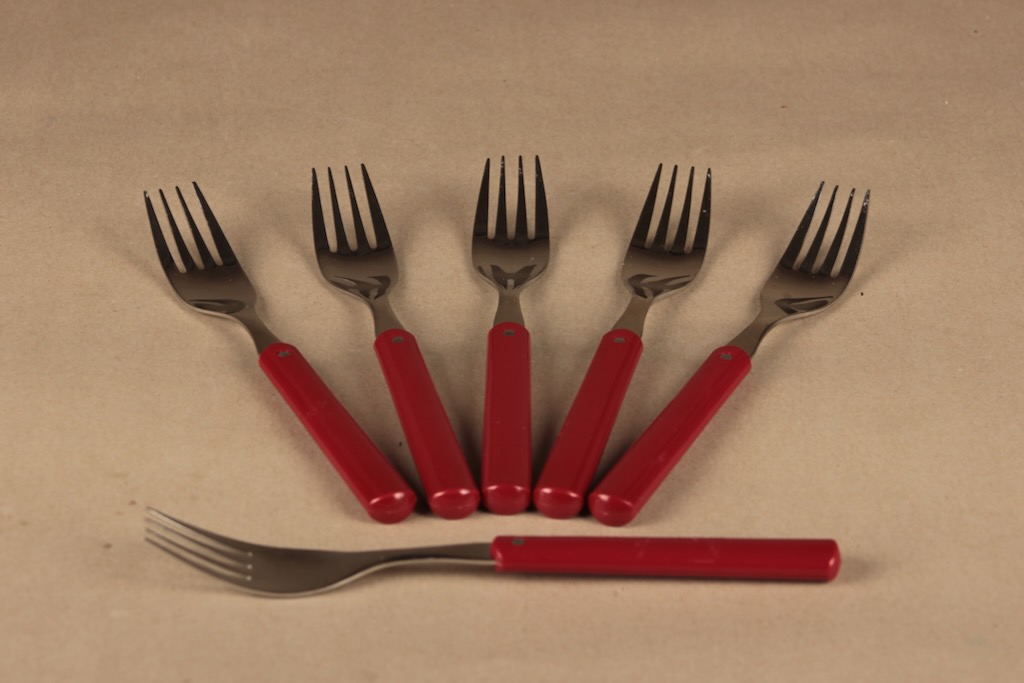 Hackman Hackminna haarukka, tummanpunainen, 6 kpl, suunnittelija Ahti Majuri,
