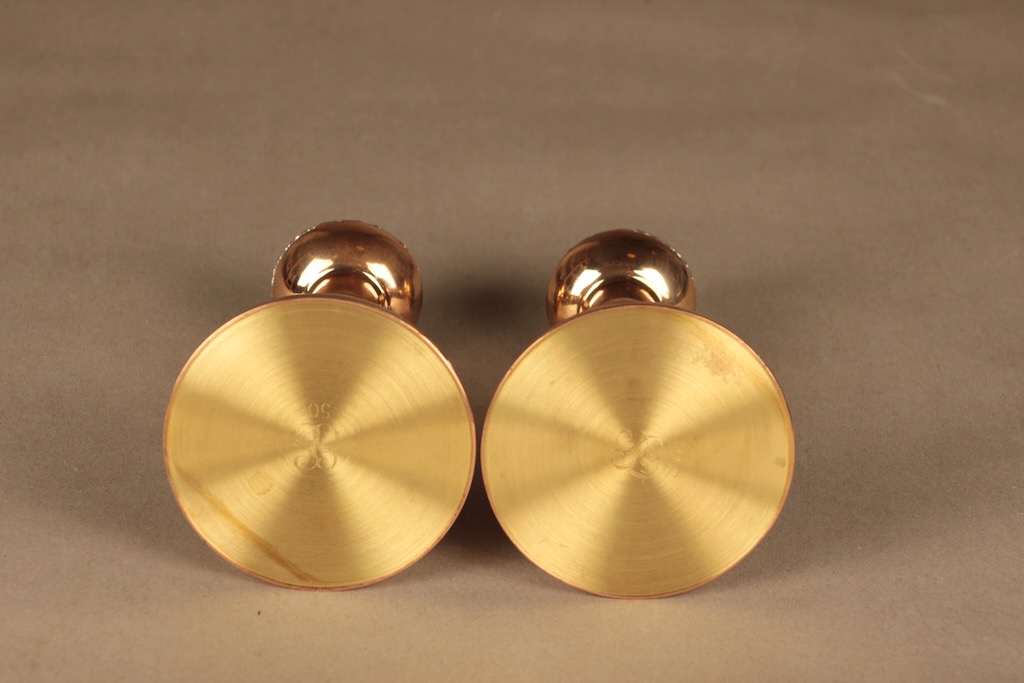 Turun Hopea Pitsi kynttilänjalka, kulta, 2 kpl, suunnittelija Pentti Sarpaneva, pronssi