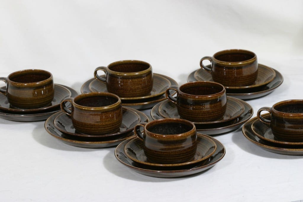 Sisältää alus- ja leivoslautaset. Leimat kuluneet pois. Koriste Ulla Procope.