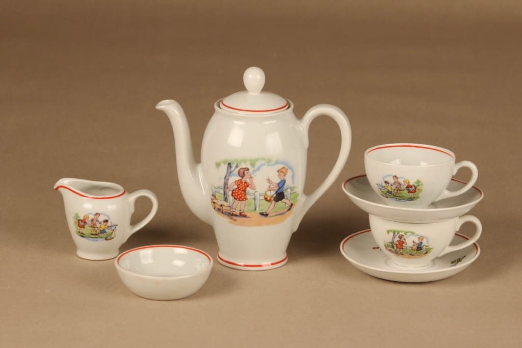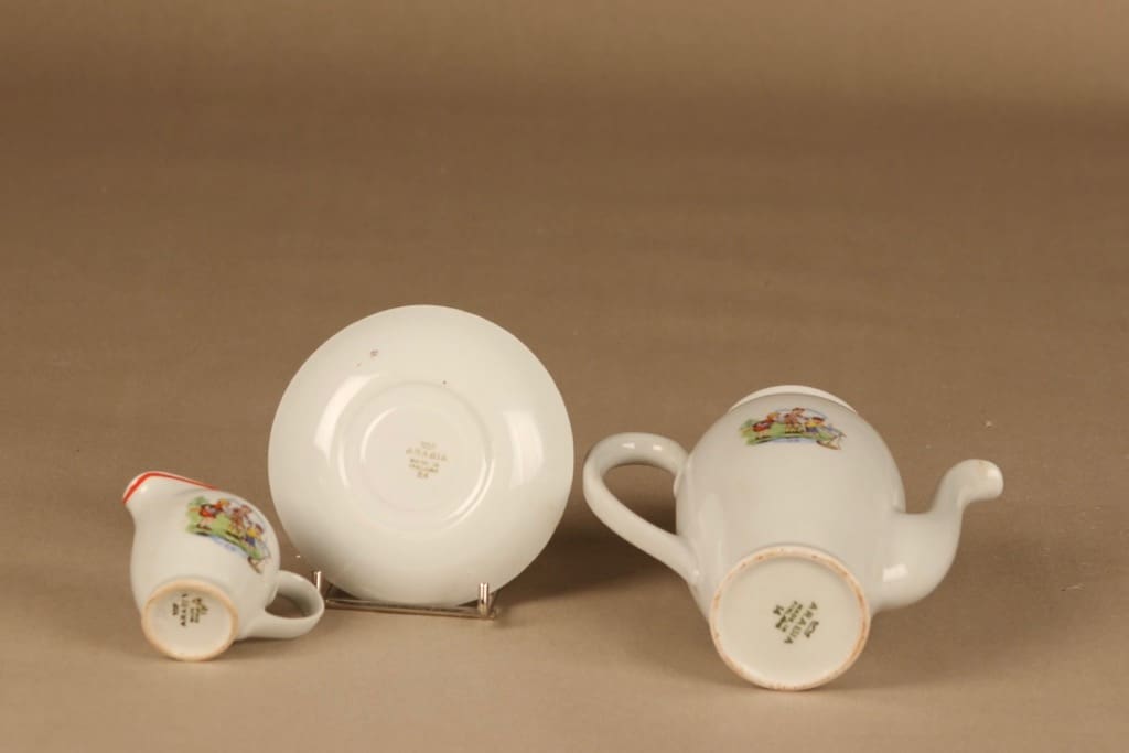 cup 4*7 cm, saucer diameter 10.8 cm. Pitcher height 16 cm. Sugar bowl 2.5*7. creamer height 6 cm.