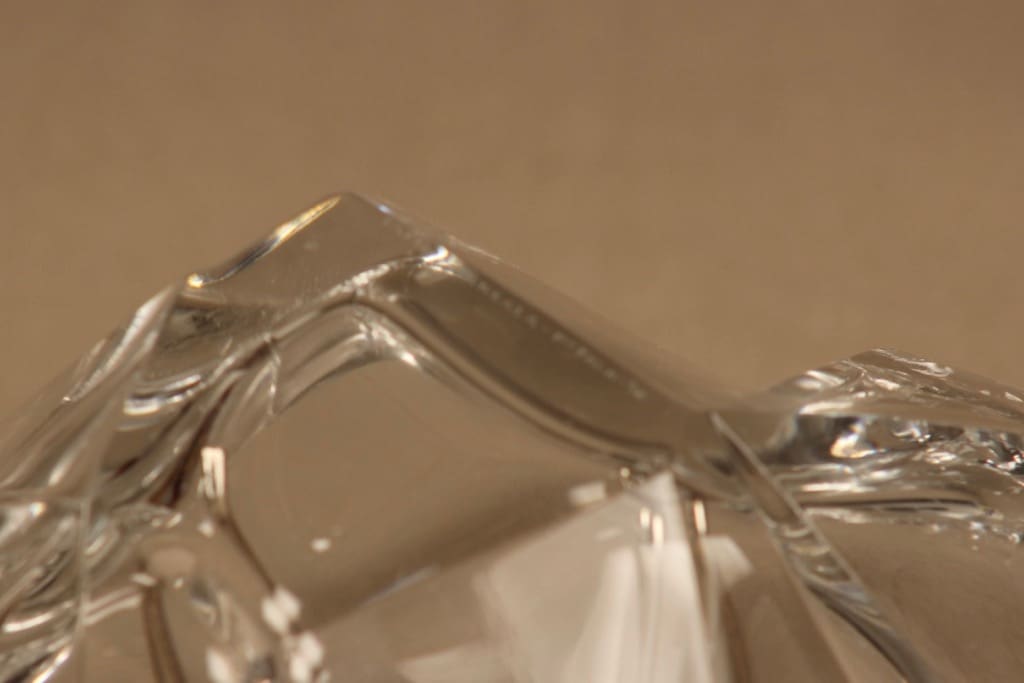 mold blown crystal, hammered and ground edge