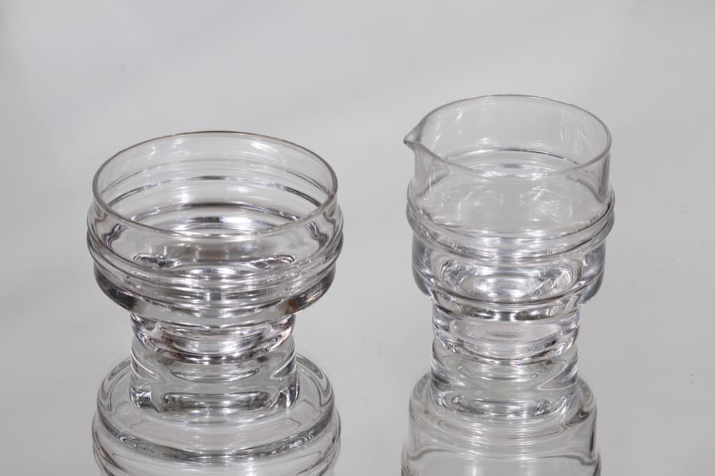 Iittala Pisaranrengas sugar bowl and creamer, clear, Timo Sarpaneva