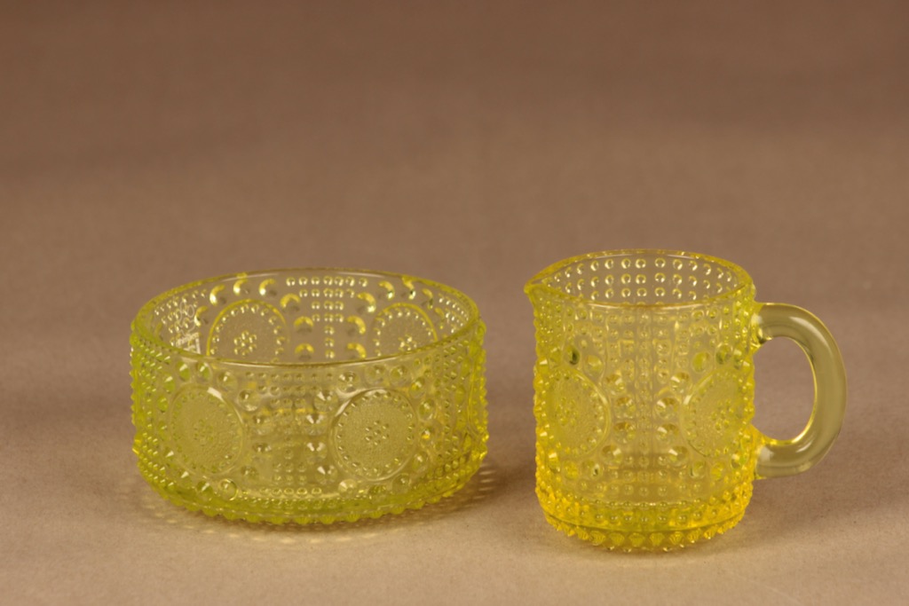 Riihimäen lasi Grapponia sugar bowl and creamer, yellow