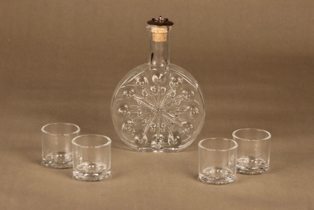 Riihimäen lasi Lumitähti caraffe and 4 glasses designer Nanny Still