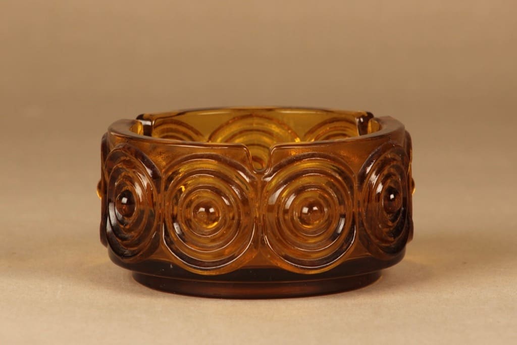 Riihimäen lasi Rengas ash tray, brown designer Tamara Aladin