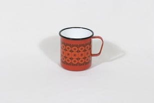 Finel Kehrä muki, punainen, suunnittelija Raija Uosikkinen, serikuva, retro