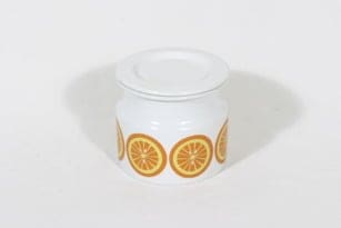 Arabia Pomona purnukka, appelsiini, suunnittelija Raija Uosikkinen, appelsiini, serikuva, retro