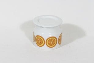Arabia Pomona purnukka, appelsiini, suunnittelija Raija Uosikkinen, appelsiini, serikuva, retro