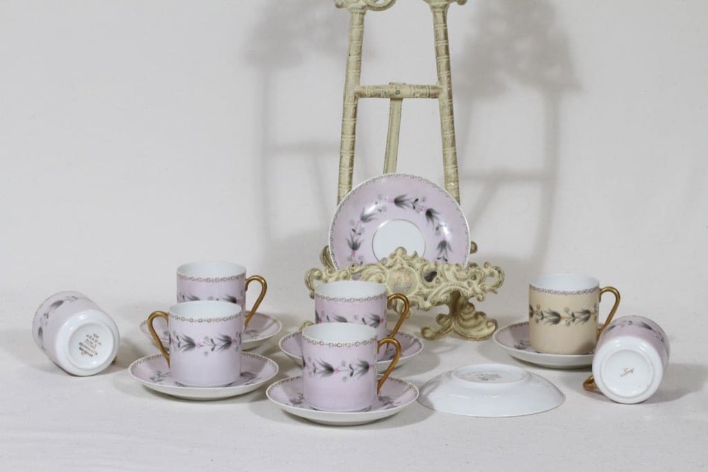 Arabia OC mokkakupit, käsinmaalattu, 6+1 kpl, suunnittelija Esteri Tomula, käsinmaalattu
