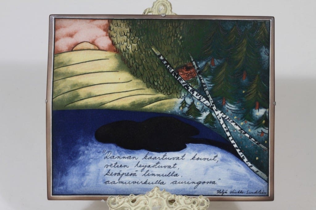 Arabia koristelaatta, Rannan koivut, suunnittelija Heljä Liukko-Sundström, Rannan koivut, suuri, serikuva, signeerattu kuva 2