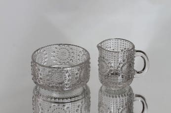 Riihimäen lasi Grapponia sokerikko ja kermakko, kirkas, suunnittelija Nanny Still,