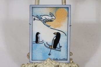 Arabia koristelaatta, suunnittelija Heljä Liukko-Sundström, pieni, serikuva, eläinaihe