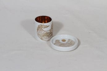 Arabia munakuppi ja lautanen, suunnittelija Gunvor Olin-Grönqvist, serikuva, kullattu