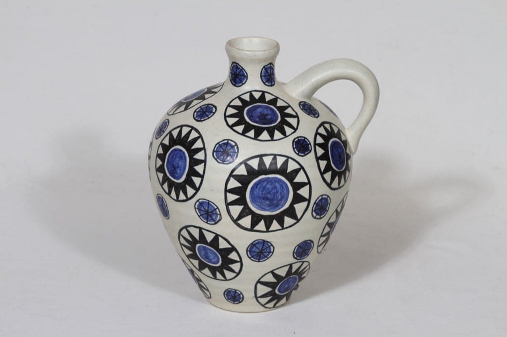 Kupittaan savi maljakko, käsinmaalattu, suunnittelija Laila Zink, käsinmaalattu, retro