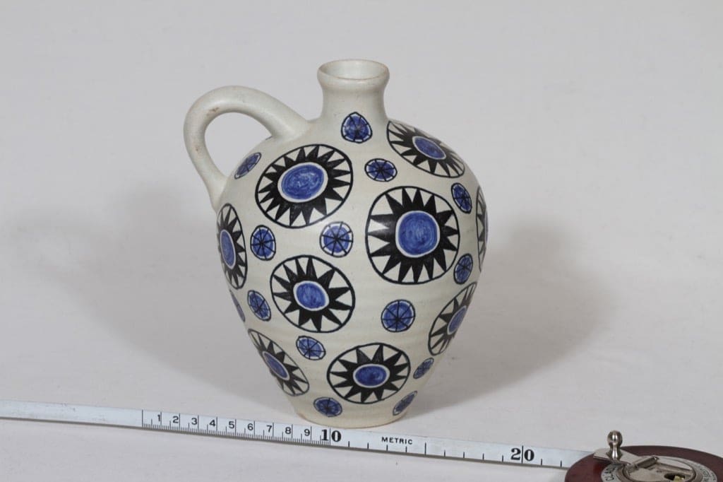 Kupittaan savi maljakko, käsinmaalattu, suunnittelija Laila Zink, käsinmaalattu, retro kuva 3