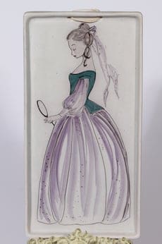 Kupittaan savi 1064 seinälaatta, käsinmaalattu, suunnittelija Gudrun Raunio, käsinmaalattu, suuri, signeerattu, naisaihe