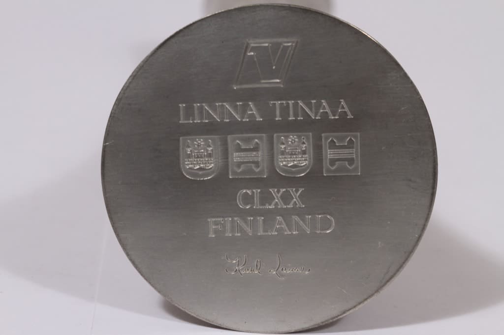 Linna Tinaa CLXX Finland maljakko, Revontuli, suunnittelija Karl Laine, Revontuli, tina kuva 2