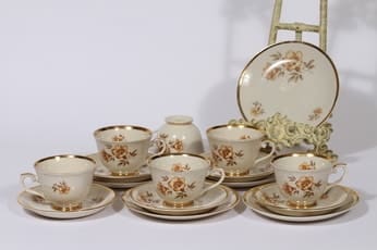 Malli ja koriste Olga Osol, kahvikupit: Myrna leima, Lautaset: Vientileima