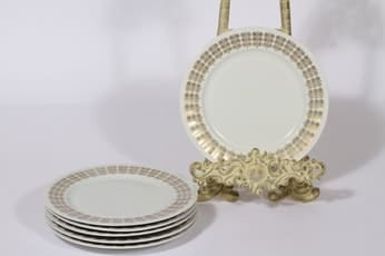 Arabia Pallas lautaset, 6 kpl, suunnittelija Raija Uosikkinen, ornamentti, kultakoriste