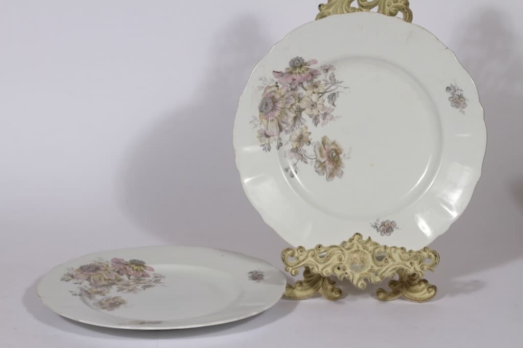 Arabia lautaset, 2 kpl, suunnittelija , siirtokuva, kukka-aihe