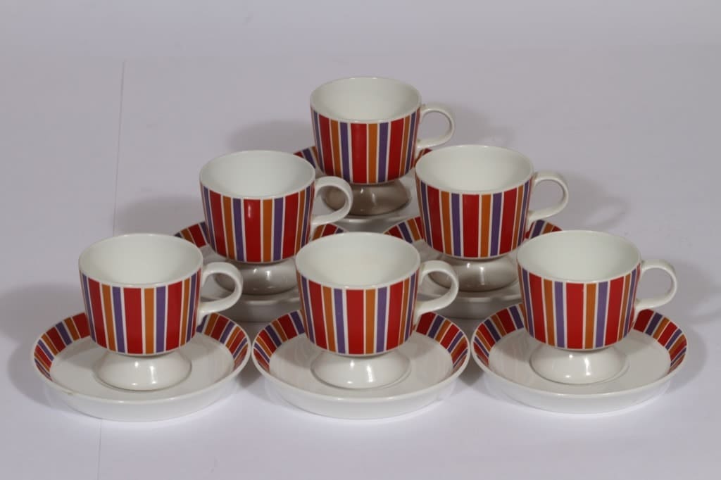 Arabia Venla kahvikupit, 6 kpl, suunnittelija , serikuva, raitakoriste, retro