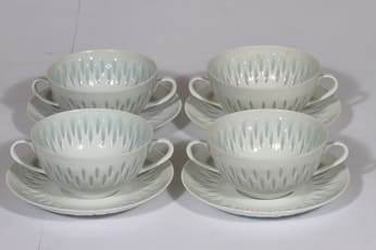 Arabia FK annosliemikulhot, valkoinen, 4 kpl, suunnittelija Friedl Holzer-Kjellberg, riisiposliini, signeerattu
