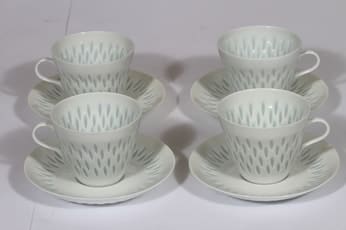 Arabia FK kahvikupit, valkoinen, 4 kpl, suunnittelija Friedl Holzer-Kjellberg, riisiposliini, signeerattu
