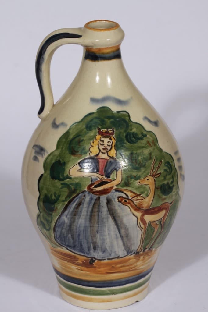 Aihe: peuroja ruokkiva prinsessa. Taiteilijan oma signeeraus.Kuvasto 1941.