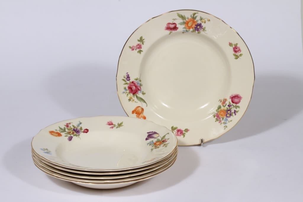 Arabia Kesäkukka lautaset, syvä, 6 kpl, suunnittelija , syvä, siirtokuva, kukka-aihe