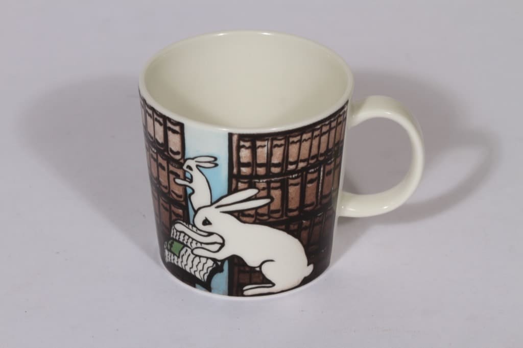 Arabia Suomalainen kirjakerho SSKK muki, suunnittelija Heljä Liukko-Sundström, serikuva, pupuaihe
