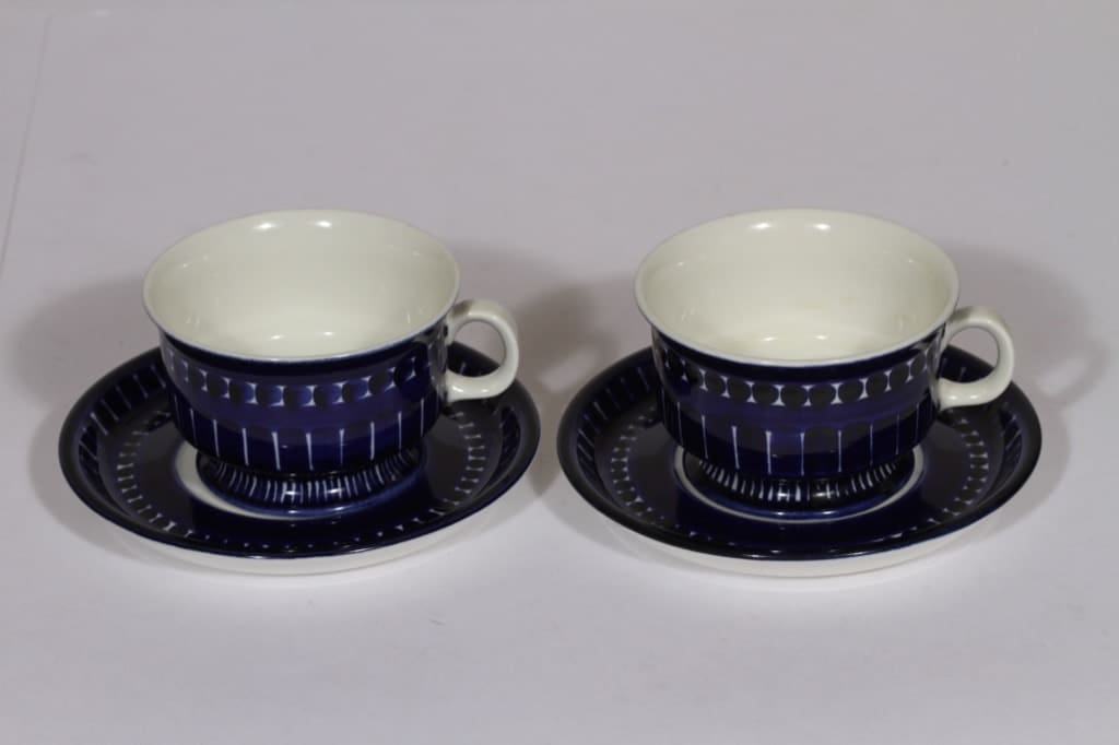 Arabia Valencia teekupit, sininen, 2 kpl, suunnittelija Ulla Procope, käsinmaalattu, signeerattu